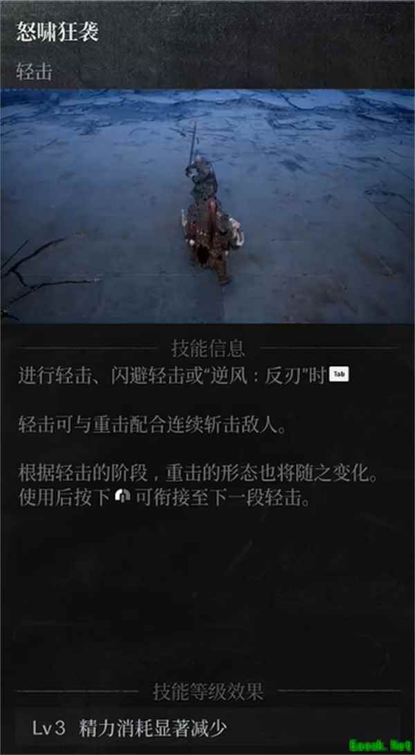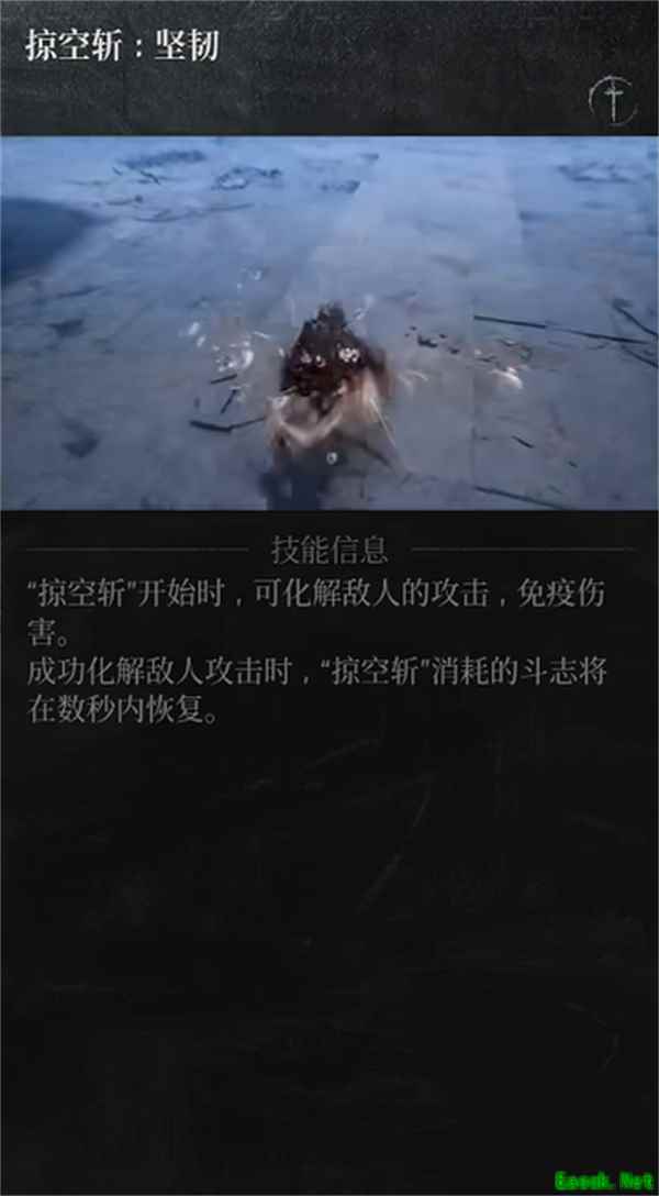 4、掠空斩:坚韧 非必点技能,可以利用这里技能进行输出,化解敌人攻击后会恢复消耗的斗志。
