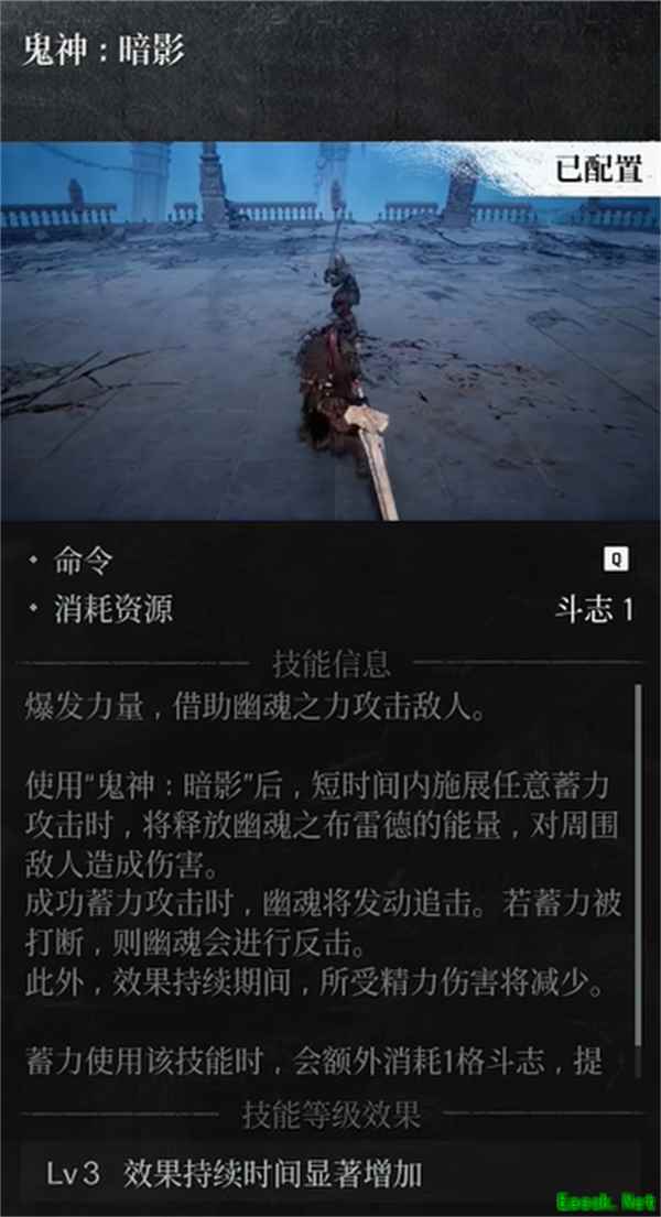六、重击 1、鬼神:暗影 这个大招消耗的斗志很多,但是造成的伤害也会更高,需要一定手法。