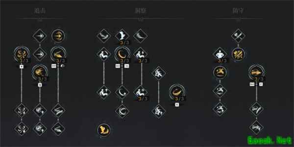 二、洞察 1、迅捷回击 作为核心技能,必须要点,在躲避敌人的攻击之后可以进行轻击释放二连击对敌人造成伤害。