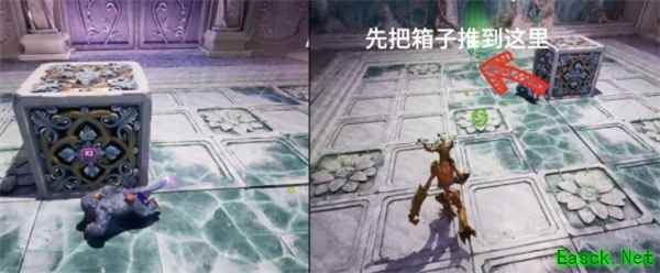 在双人合作冒险游戏双影奇境中,在第三章进入宫殿后就会遇到推箱子,部分玩家不知道推箱子应该怎么过,下面就为大家带来双影奇境中第三章推箱子关卡的通过方法分享,有需要的玩家可以参考。 双影奇境第三章推箱子攻略 1、先将方块向边缘推动。