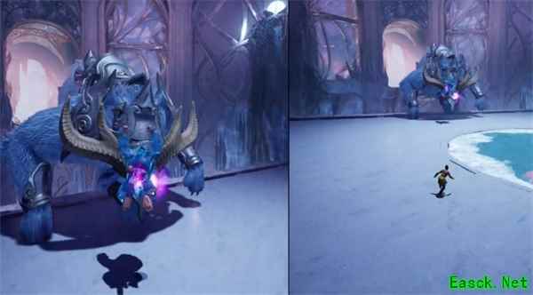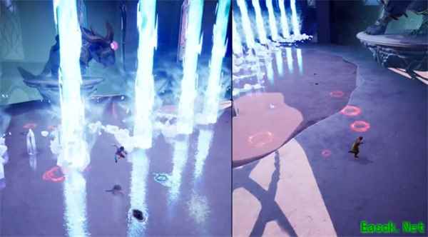 冰晶冲击波 放这招之前BOSS会有一个很明显的起身下拍动作,躲避方法也很简单,冲击波来了跳跃就行。