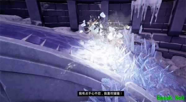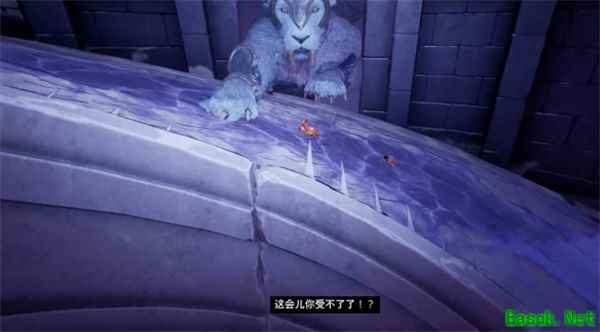 放完这招后BOSS又会起身,我们树人+猿神打个combo,将BOSS削到半血,进入二阶段。 二阶段 二阶段开始我们会被震飞,掉落在坡度向下的冰面上开始滑行。 滑行途中要注意躲避冰刺和冷不丁拍你一巴掌的猫猫。