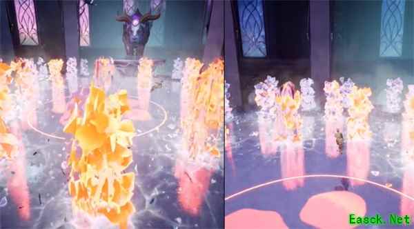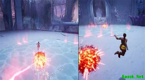 爆炸冰花 前摇较长很好躲避,出现前地上会有红色漩涡。