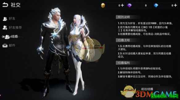 结婚福利 1、与伴侣组队将额外获得20%经验加成。 2、解锁特殊伴侣称号。 3、解锁专属伴侣交互动作、同骑动作及伴侣服饰。