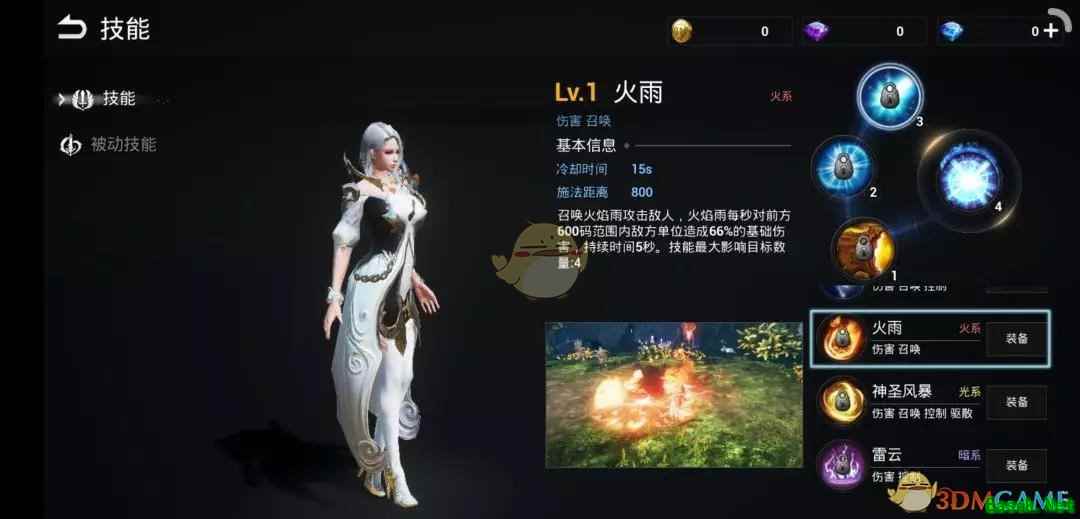 火雨: 范围AOE技能,这是火法的主要输出技能,由于没有控制,容易打空,但是配合烈焰冲击,可以打出成吨的伤害。
