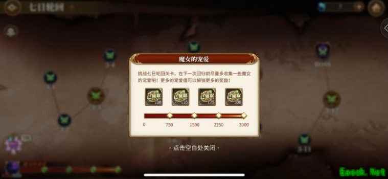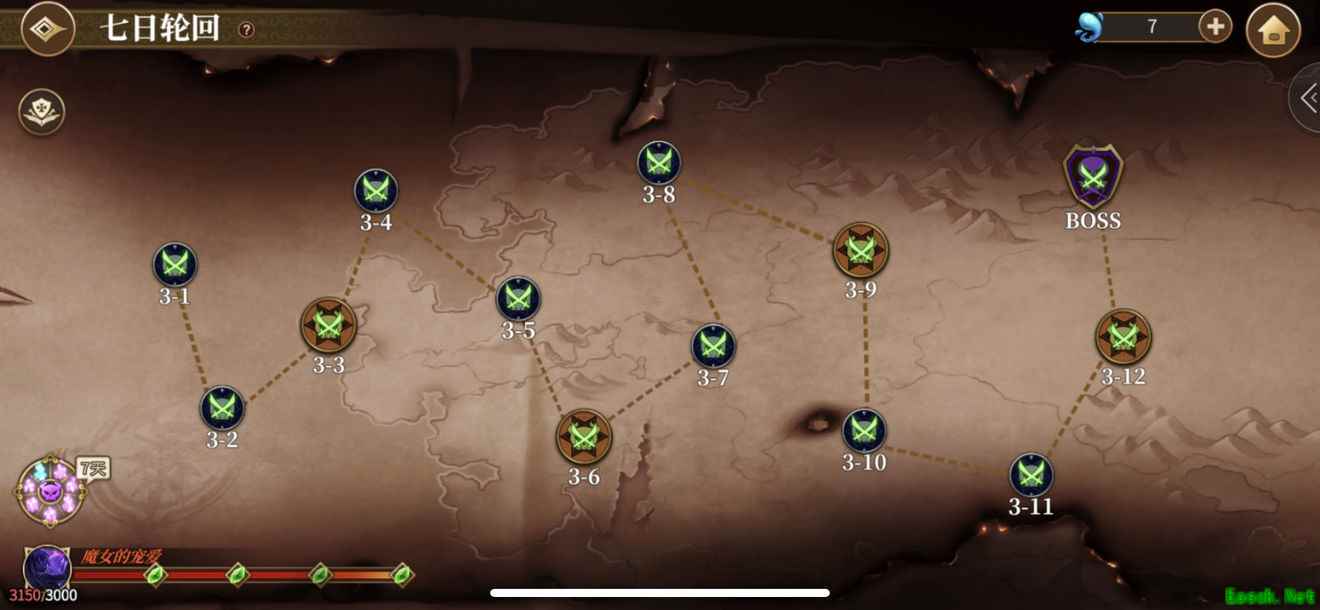 七日轮回梦魇难度攻略一、魔女的宠爱各关卡数量及原谅石获取梯度 首先贴图,梦魇难度共13关,原谅石获取四个梯度每关获取魔女宠爱数为关卡序号乘10,首通奖励与关卡奖励相同,如3-7,魔女的宠爱70点,首通奖励也是70点。 750/100—1500/125—2250/175—3000/300,总计3000点魔女的宠爱,700原谅石。