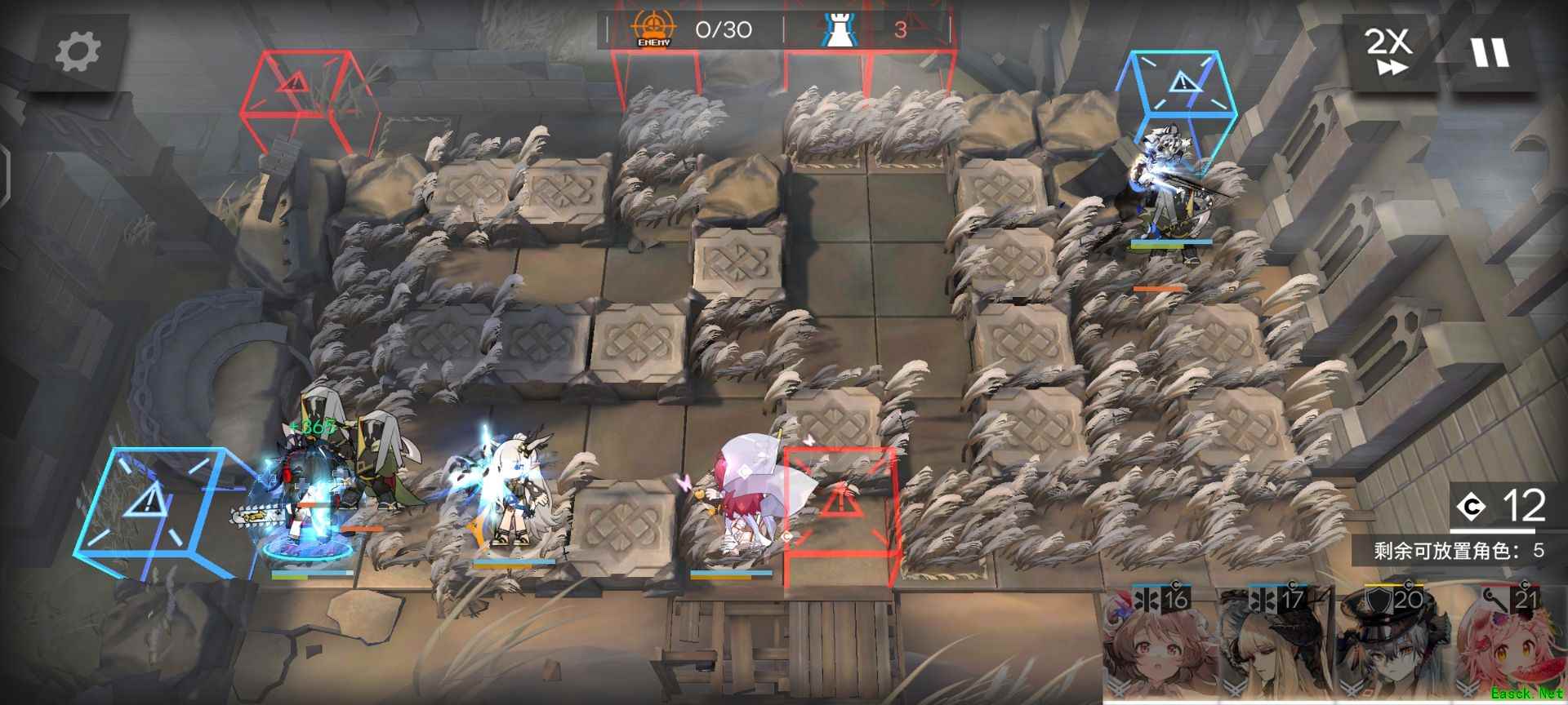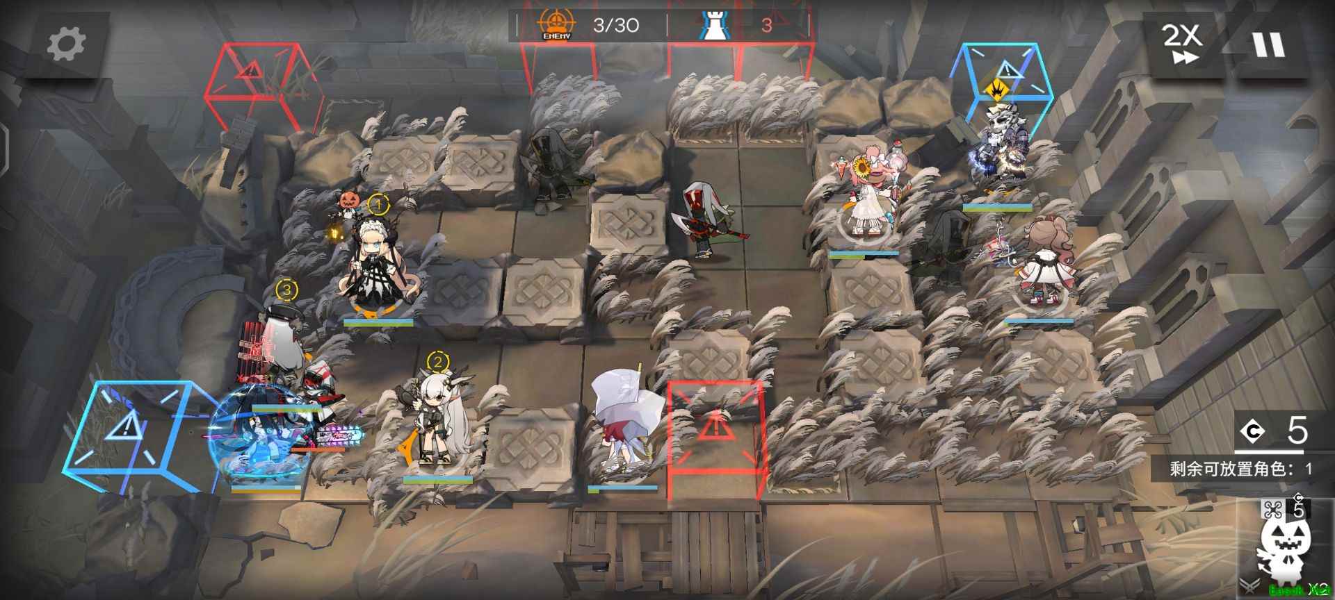 3.挂机打法 开局部署桃金娘(技能好了就开) → 煌(向上)→ 山(技能好了就开)→ 闪灵(向左)