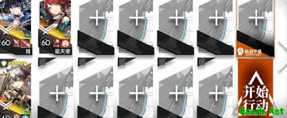 2、站位选择:能天使放在第一行右侧格子上,将煌放在右上方第1个格子,塞雷娅放在第三排第1个格子。