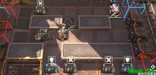 2、站位选择:将煌摆放在蓝色方格正前方,在煌的下方摆放塞雷娅,将两者的攻击方向都调到下方。