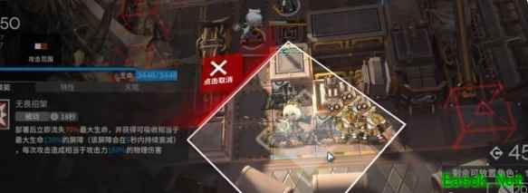 2、站位选择:下方左侧第三个格子,利用附近的机关调转角色攻击方向。