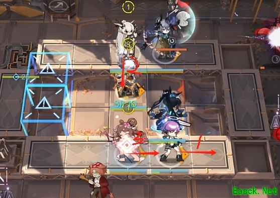 继续部署:①能天使(向右),②闪灵(向下),③艾雅法拉(向右)。随后挂机即可。