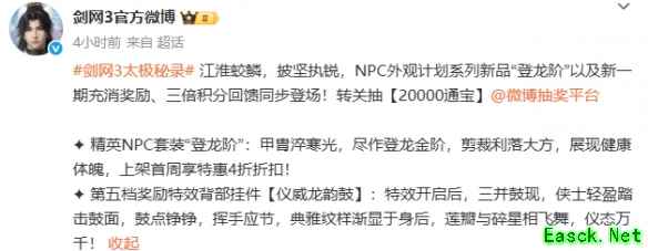 剑网3精英NPC套登龙阶外观对玩家的影响主要体现在以下几个方面: 1. 外观设计:这套外观设计精美,具有很高的观赏性。玩家可以根据自己的喜好选择不同的颜色和款式,这增加了游戏的趣味性。 2. 收集和挑战的乐趣:NPC套装的稀有性和挑战性使得玩家在收集和挑战的过程中获得了更多的乐趣。这种挑战性也增加了游戏的难度和深度,使得游戏更具挑战性。 3. 社交互动:NPC套装的出现也增加了玩家之间的互动和交流。玩家可以通过分享外观、讨论搭配等方式来增进彼此之间的友谊和交流。 4. 对游戏经济的影响:NPC套装的稀有性和高价值使得玩家们竞相购买和收集。这在一定程度上推动了游戏的经济活动,促进了游戏内货币的流通和增值。 5. 对游戏平衡性的影响:NPC套装的强度和属性加成可能会对游戏平衡性产生一定的影响。如果某些NPC套装过于强大,可能会影响其他玩家的游戏体验。 6. 对新手玩家的引导:对于新手玩家来说,NPC套装的存在可以帮助他们更快地熟悉游戏系统和玩法,从而更好地融入游戏世界。 总的来说,剑网3精英NPC套登龙阶外观对玩家的影响是积极的,它增加了游戏的趣味性和挑战性,促进了玩家之间的交流和互动,同时也推动了游戏的经济活动。然而,这也需要游戏开发者在平衡性和难度设置上做出适当的调整,以确保游戏的公平性和可持续性。 剑网3精英NPC套登龙阶外观是什么样的呢?剑网3精英NPC套推出了新外观登龙阶,那么该外观长什么样子呢,相信有很多玩家都比较好奇的,【登龙阶】为全新的精英NPC套,外观原型为太极宫秘境首领【侯青】,时装将在2025年6月26日上线。 ![]() 剑网3精英NPC套登龙阶外观上线时间:2025年6月26日7:00 外观展示 1、成男 ![]() 2、成女 ![]() 3、萝莉 ![]() 4、正太 ![]() 详细介绍 1、【登龙阶】为全新的精英NPC套,外观原型为太极宫秘境首领【侯青】; 2、时装将在2025年6月26日上线,原价为16000通宝,黑发售价11,600通宝; 2、首周购买还有对应的专属折扣,折扣后外装售价64元,黑发售价46.4元。