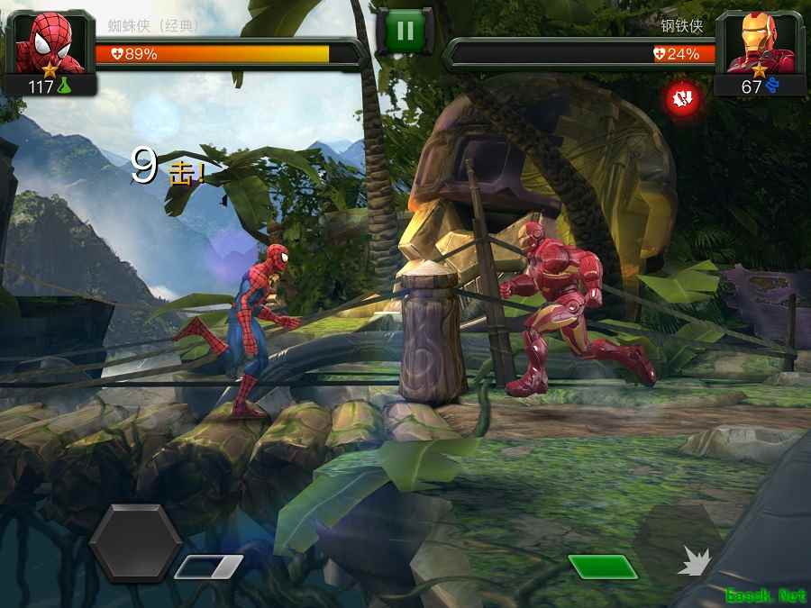 我个人接触格斗游戏很少,感觉格斗游戏最大的特点就是难、硬核、各种小技巧数不胜数,难入门。但是《漫威:超级争霸战》改变了我对格斗游戏的这些看法。在新手教程的时候我还以为这游戏要搞个8方向的轮盘出来,然后再来个拳击、腿击按钮……结果屏幕上干干净净的一个按钮都没有,才知道这游戏的所有操作都只要一次点击或者滑动就行了。这也放松了我对这款游戏的“戒心”,后来发现在战斗的时候只要战力差不多,哪怕你无脑莽过去都是没有问题的。