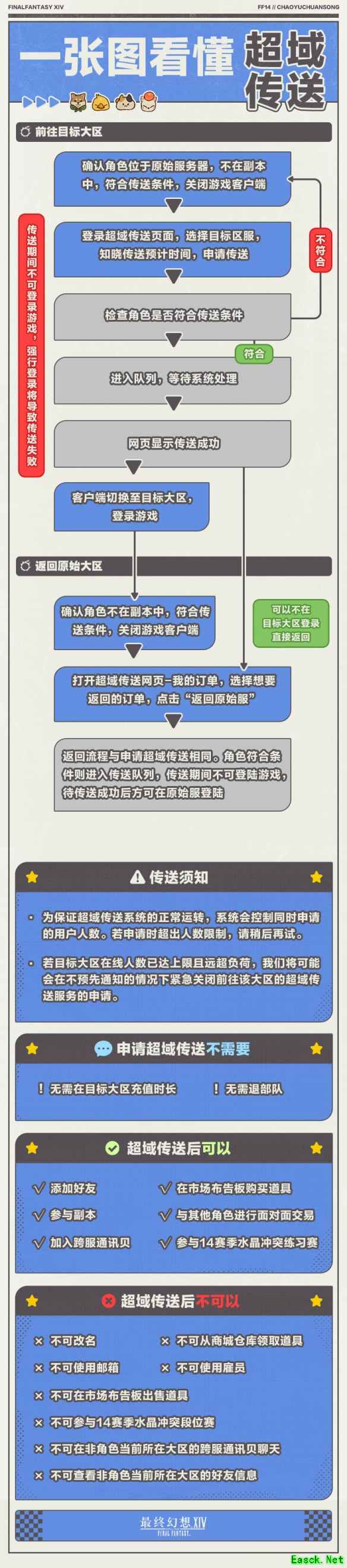 超域传送在最终幻想14中是一种强大的功能,它能够让玩家快速在不同的地区和任务之间进行切换。这种功能对于游戏体验有积极的影响。 首先,它提高了游戏的便捷性。对于一些需要经常在不同区域之间移动的玩家,超域传送可以节省大量的时间和精力。他们不再需要步行或使用交通工具进行移动,可以直接使用超域传送到达目的地。 其次,超域传送增加了游戏的探索性。玩家可以使用超域传送去他们从未去过的地方,探索新的地区和任务,增加游戏的可玩性和趣味性。 再者,超域传送也可以促进玩家之间的合作和交流。由于一些地区和任务是团队副本或者需要多人协作才能完成,超域传送的使用可以让玩家更容易地组织团队和进行合作。 然而,超域传送也可能会带来一些负面影响。首先,过度依赖超域传送可能会减少玩家的游戏体验。一些玩家可能会过于依赖超域传送,而忽视了游戏中的其他元素,如探索、战斗和社交互动。这可能会减少游戏的深度和丰富性。 其次,超域传送可能会加剧游戏中的不平衡性。一些地区和任务可能需要特定的准备或装备才能顺利完成,而超域传送的使用可能会让这些地区的吸引力降低,导致游戏中的不平衡性增加。 最后,超域传送可能会增加游戏中的作弊行为。一些玩家可能会使用超域传送来快速完成游戏中的任务或获得优势,这可能会破坏游戏的公平性和乐趣。 综上所述,超域传送在最终幻想14中对玩家的影响是双面的。它增加了游戏的便捷性和探索性,但也可能会减少游戏的深度和丰富性,加剧游戏中的不平衡性和增加作弊行为的风险。因此,开发者需要平衡这些影响,确保游戏的公平性和乐趣。 最终幻想14超域传送怎么用?最终幻想14的超域传送功能已经开启了全面试运行了,目前该系统还在调整中,玩家们可能会遇到很多不一样的问题,下面就给大家带来详细说明哦。 ![]() 亲爱的冒险者: 超域传送全面试运行现已开启! 在使用超域传送服务前,请您仔细阅读以下须知: ※当前冒险者在使用超域传送服务时会遇到以下问题: ①当同账号在不同大区登录时,将会强制下架上个登录大区下雇员已经上架的物品。该问题我们将在后续进行修复。 ②若在使用超域传送服务时页面提示:目标大区角色空位无法确认。请您打开游戏客户端选择您想要前往的目标大区,登录游戏后点击开始游戏按钮看到角色选择界面,即可确认目标大区角色空位。之后关闭游戏客户端,在超域传送服务页面进行申请流程即可。 ※特别说明:由于目前超域传送功能仍处于试行阶段,若有任何变动将会再次通过官网公告进行通知。 若您在体验过程中有遇到任何问题均可以在石之家问题反馈帖中交流反馈。 一张图看懂超域传送 ![]() 其他更多游戏内功能说明请查看超域传送说明特设网站。 焦点问题解答 Q: 申请超域传送时提示“角色未满足传送条件,请检查服务器或角色等信息是否正确”怎么办? 在我的订单中点击返回原始服时,需要请确认您当前选择的角色游戏所在服务器和页面选择的服务器是否一致,如果不一致请将服务器信息调整为一致后再次申请返回原始服。 (方案1.页面切换服务器与游戏一致。方案2.游戏内角色跨界到之前超域传送时选择的服务器。) Q: 返回时提示“预检失败”怎么办? 请您确认申请角色当前是否在原始服务器,如果不在原始服务器,请返回原始服务器后下线,再次申请传送。 Q: 申请超域传送需不需要退部队? 不需要。 Q: 我在原始大区的房屋怎么办? 超域传送申请不需要拆除原始服务器的房屋,本次超域传送开放时我们会临时解除房屋自动拆除机制,后续恢复房屋自动拆除机制时会另行官网通知。若您的账号绑定过官方企微(点此绑定),恢复房屋自动拆除机制时也将进行信息推送。 Q: 能在其他大区添加好友吗? 可以在目标大区添加好友,但仅有您与好友处于同一大区的情况下,方可读取到好友信息。 Q: 需要在目标大区充值时长吗? 不需要,全大区时长现已合并。合并时长后同一账号在不同大区不可同时登录。 Q: 可以在目标大区使用雇员吗? 无法使用雇员,无法使用邮箱。 Q: 可以在目标大区使用市场布告板吗? 无法在市场布告板出售道具,但可以从市场布告板购买道具。 Q: 在目标大区能否与其他角色进行面对面交易? 可以。 Q: 可以在目标大区参与水晶冲突段位赛吗? 7.2版本开启的14赛季不可以在其他大区参与段位赛,但可以参加练习赛。 Q: 超域传送后如何返回原始大区? 在大国防联军后勤补给站超域传送服务页面进行申请后会在【我的订单】下生成1条传送记录,点击返回原始服即可。 您在目标大区通过副本、市场布告板、与其他玩家面对面交易等途径获得的道具将跟随角色一并返回原始大区。 |