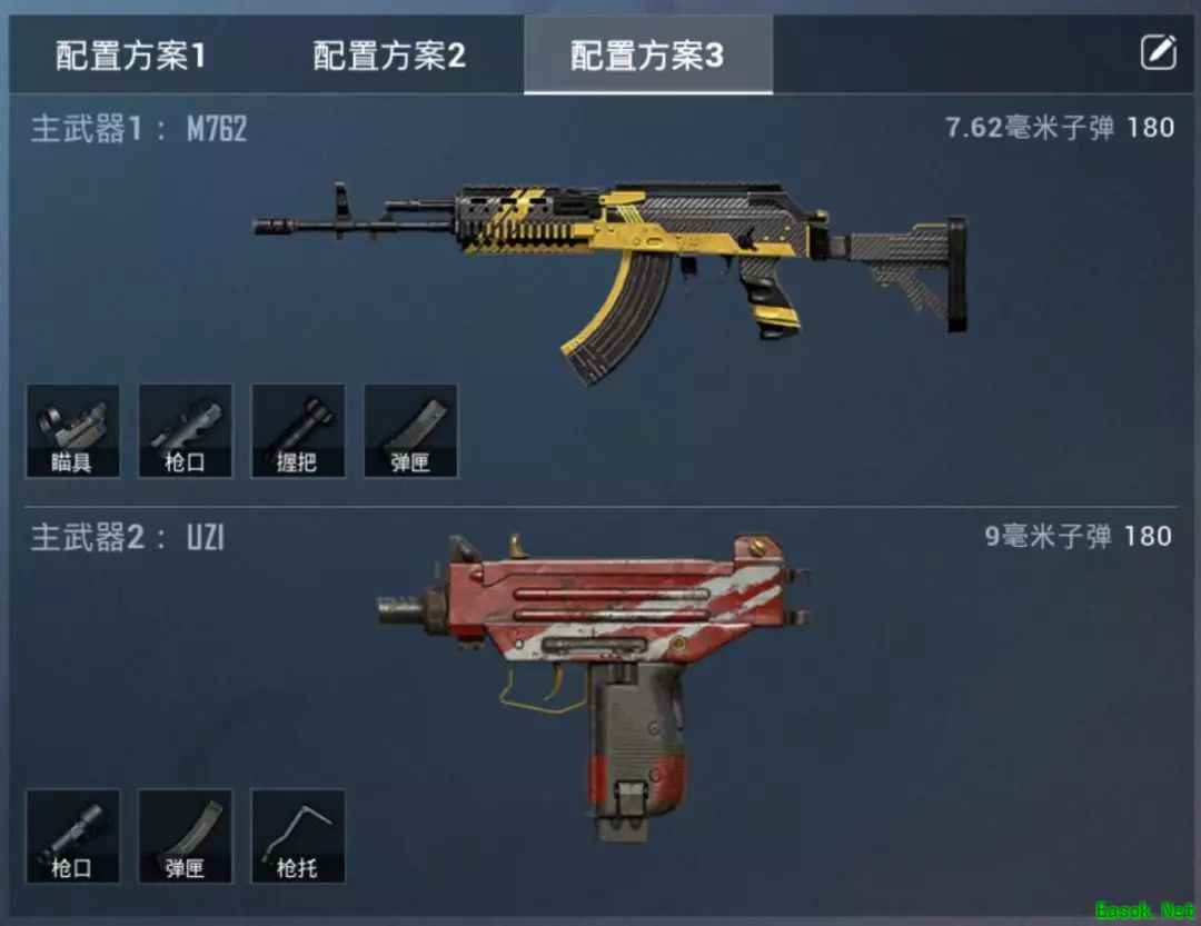 二、枪械配置搭配推荐 战术团队竞技允许特种兵们配置三种枪械搭配方案,这波简直不要太爽,今天小白裙就给大家推荐两种枪械配置。 1)喜欢突击的特种兵可以选择近战神器满配UZI搭配一把满配M762,UZI射速飞快,M762伤害高,适合中近距离的钢枪操作。 2)喜欢远距离狙击对手的特种兵,可以选择98K和M762组合,98K装上4倍镜/6倍镜和消音器,相当恐怖,另外因为“随机返场于在场队友附近”的机制,我们还需要一把满配的M762来应对突发情况。