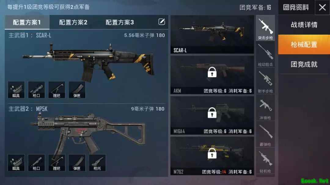 然后点击枪械配置,枪械配置中有多种武器可以进行配置。