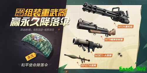 活动时间: 10月23日-10月30日 通过每日登录游戏、参与1局火力模式战斗、参与1局经典模式战斗等任务均可获得配件用于组装重武器,共4个重武器待组装。 解锁前3把重武器分别会给1个重装迷彩宝箱,有机会获得金币,服饰币、永久套装。 组装解锁完第4把重武器可获得和平使命降落伞(永久)。 活动玩法 还是跟以往的活动一样,参与特定的模式既可领取碎片,而碎片集齐之后就可以合成四把重武器,领取永久降落伞了。 以上就是小编带来的《和平精英》组装重武器赢永久降落伞活动,更多内容请关注手游网,小编将持续更新。 |