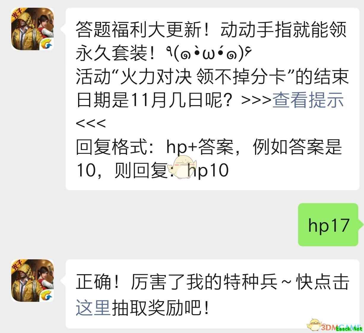 和平精英11月14日每日一题 题目:活动“火力对决 领不掉分卡”的结束日期是11月几日呢?