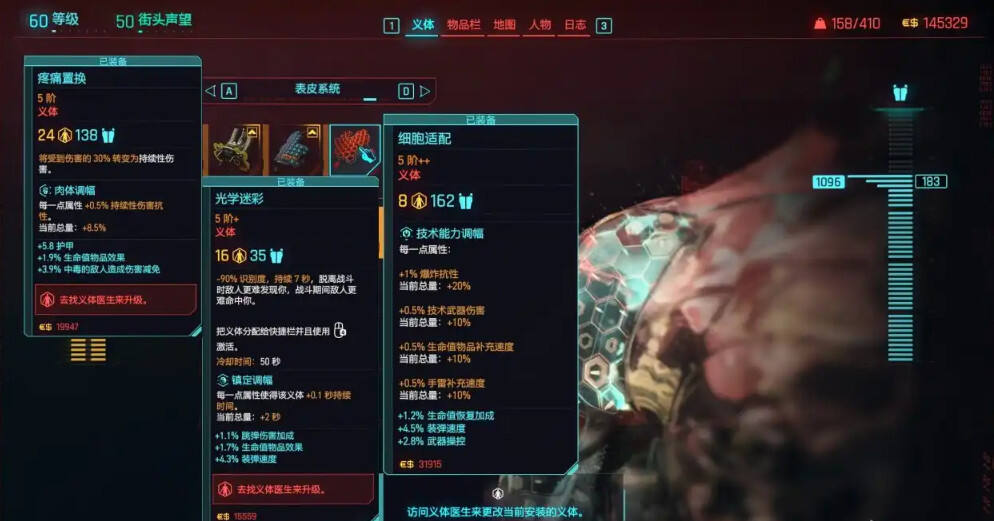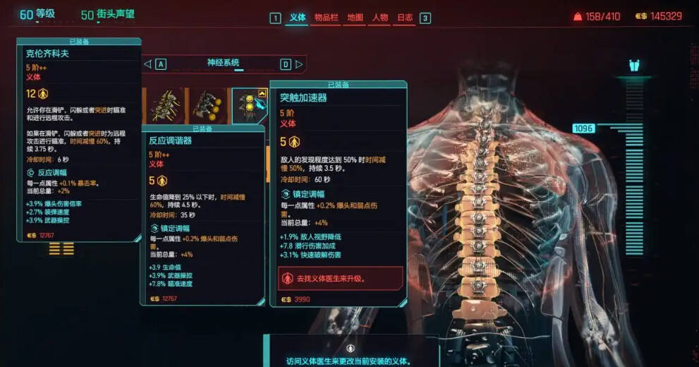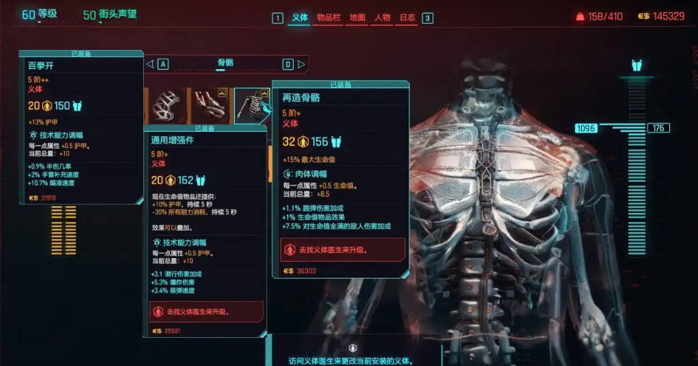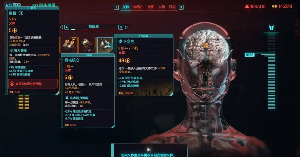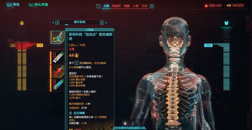 在《赛博朋克2077》中,枪械流义体是一种重要的装备,它能够增强玩家的枪械技能,提高战斗效率和生存能力。以下是一些常见的枪械义体介绍: 1. 枪管:增加射速和伤害。 2. 枪盾:增加防御和伤害,同时提供一定的掩护。 3. 自动手枪模块:可以替换主武器,增加手枪的伤害和射速。 4. 无限弹药:永久增加角色的弹药数量。 5. 增压器:增加伤害和射程,但会影响移动速度和反应时间。 玩家在选择这些义体时,需要考虑自己的战斗风格和角色定位。如果玩家更倾向于近战,那么枪械义体可能不是最佳选择。但如果玩家更喜欢使用枪械进行战斗,那么这些义体将大大提高玩家的战斗效率和生存能力。 选择义体对玩家的影响主要体现在以下几个方面: 1. 角色能力:不同的义体会对角色的能力和技能产生不同的影响,例如增加伤害、射速、防御力等。玩家需要根据自己的游戏风格和角色定位来选择合适的义体。 2. 游戏体验:一些高级的枪械义体,如增压器,可以提高玩家的伤害和射程,但也会影响角色的移动速度和反应时间。因此,玩家需要根据自己的游戏体验来选择合适的义体,以获得最佳的游戏体验。 3. 难度和挑战性:高级的枪械义体可以提高玩家的战斗效率和生存能力,因此在面对更高级别的敌人或更高难度的任务时,玩家可能会更加轻松地完成任务。 总的来说,选择合适的枪械义体对玩家在《赛博朋克2077》中的游戏体验和战斗能力有着重要的影响。玩家需要根据自己的游戏风格和角色定位来选择合适的义体,以获得最佳的游戏体验。 赛博朋克2077在更新2.0版本之后就重做了义体系统,游戏中的义体属性、义体效果都进行了更改,同时也增加了义体栏位的限制,下面就为大家分享赛博朋克2077中的义体详情。 以下内容由小黑盒用户Link24分享。 其实在游戏更新2.0版本技能树完全重做之后,现在的加点已经非常简单明了,基本想玩什么流派就加什么点;而义体相对也比较明确,没有太复杂的内容。因此这里我就把我游玩过程中用到的义体和加点贴出来分享一下,首先说明我玩的是枪械流,也就是除智能武器外所有的枪械流都可以用我这一套搭配。绝大多数义体包括不朽义体都可以在狗镇义体医生处购买获取,因此我这里就不特殊说明获取方式了。 【义体】额皮质 额皮质义体选择 皮下变色:神。能让军用科技“远地点”斯安威斯坦无限续航的神之义体,适用于所有流派。什么?V会开死眼?还能边跑边开?这还玩毛啊? 机电核心:简单有效的好用。 自我ICE:总归是有用的。毕竟额皮质这个位置主要还是给黑客流准备的,其它流派就有啥用啥吧。 【义体】胳臂 胳臂义体选择 射弹发射系统:其实我很少用这个(和光学迷彩键位冲突),但射弹发射系统是装在手臂上花纹最好看的。 【义体】骨骼 骨骼义体选择 再造骨骼:生命值,护甲,简单粗暴。 通用增强件:主要是用别的义体容量不够,凑活用吧。 百拳开:护甲,简单粗暴。 【义体】神经系统 神经系统义体选择 克伦齐科夫:神。想玩的帅就必须带,小型斯安威斯坦不是盖的。 突出加速器:意外的好用,潜行打法的最好帮手。 反应调谐器:救命于危难之际,也是一声警钟。 【义体】表皮系统 表皮系统义体选择 细胞适配:神。靠技术能力加点才能解锁的义体,强的没边。 光学迷彩:也是神。潜行流派、主线支线委托任务重需要潜行时的BUG级义体,打开光学迷彩,走过去,对就是这么简单。 疼痛置换:可以换成别的,但是2077里看到了死亡之舞你真的不带么? 【义体】腿部 腿部义体选择 强化肌腱:真神。我就说三个字:二段跳,这你还不懂么?其他的也很强,但我只能选一个,我能怎么办,恨得牙痒痒,能不能再给我装一个腿? 【义体】循环系统 循环系统义体选择 副心脏:曾经1.0版本的神,如今依然能打。虽然几乎用不到,但是看说明我就忍不住装一个,因为我不知道谁忍得住。 生物监测:省得你按那个嗑药键了。 击杀治疗:曾经的神,如今依旧很不错。 【义体】手掌 手掌义体选择 省力减震:枪械流,好像也没太多选择。 纹身:虎爪帮真皮用墨:我装它是因为当时没有义体容量了,谁知道后来捡了个义体容量芯片,无所谓了,反正也没有机会用智能武器。 【义体】面部 面部义体选择 歧路司义眼“神谕”:不是哥们,其他义眼都是什么玩意儿,能跟神谕比么? 行为特征同步面板:既然白送了,那我就收了。正好我嫌NCPD烦,这下一键摆脱舒服得很。 【义体】操作系统 操作系统义体选择 军用科技“远地点”斯安威斯坦:《赛博朋克:边缘行者》看了没?没看还不快去看?看了?那么好,大卫的斯安威斯坦秀到你了没,现在给你个和他一样样的机会,你装不装?黑客、近战流可以按需选择其它操作系统。 |