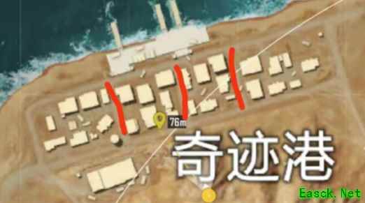 城区1段换个4段分别位于奇迹港的西东两端,再往边上就是非常空旷的地带。2、3段被1/4段包围在中间,每个区域都有若干平方和二层房,其中2、3段还拥有奇迹港最高的三层房。 二、落点选择 最佳落点都选择靠边的位置,这样进可攻,退可守,如果降落在中心就会被敌人牵着鼻子走,打与不打都是敌人说了算。所以奇迹港的最佳跳点一定是西南厂房、1段和4段,均方便从南方山上撤退或者到山上架枪伏击对手。 这里没选到2、3段的原因是位于港口中心,一是不方便撤退,二是容易遭到夹击。不选港口的原因是,港口同样比较狭长,而且处于低点,不仅容易被主城区逐个击破,还能被2、3段架死(2、3段虽然就高楼,但是视野不好,阳台只能架到港口,其余楼层的窗户又少又小,也不能掌控主城区视野)。