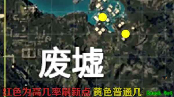 2、在废墟中一共有两处军火库刷新位置,分别位置于水中的房屋中和陆地上房屋中,两个位置都是黄色普通概率刷新区,玩家需要的话就可以到这两个位置寻找。