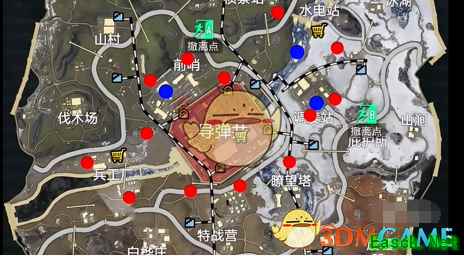 4、boss打野点: 开局后会自动刷新四个BOSS点位,最后一个BOSS会在望塔附近的马路旁: