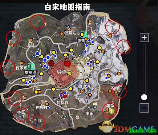 二、文件柜 冰河禁区文件柜内可高概率刷新金库密码卡。 1、兵工厂 2、庇护所里面 3、瞭望塔 4、前哨的棚子,boss房北面建筑 5、特战营boss房二楼。 6、水电站南边废弃的船上 7、兵工厂 8、调度站boss房内 蓝色圆点是文件柜位置: