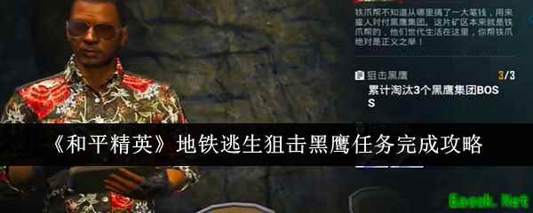 《和平精英》地铁逃生狙击黑鹰任务完成攻略答:累计淘汰3个黑鹰集团boss即可完成任务。 详细介绍 1、首先我们在马尔科姆处接取任务,然后我们前往迷雾荒岛的地图。