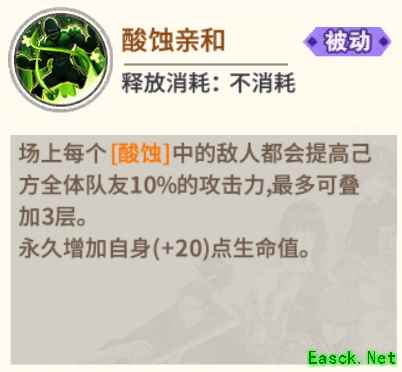 若想使用酸蚀流进行阵容排列,那么推荐角色便是格洛里巴斯。要问原因的话,便是因为格洛里巴斯能够在游戏中的神秘商店里被刷新出来,是较为容易得到的角色。另外,它的技能【酸蚀亲和】拥有酸蚀敌方全体后增强己方攻击能力的属性特技,就这一点而言,没有人能够代替格洛里巴斯在酸蚀流当中的地位。