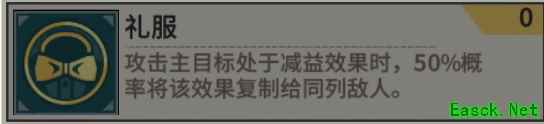 还有一个重要角色,便是疫苗人。他的被动技能【地球使徒】可在触发持续伤害时,对敌方全体造成持续伤害,伤害值高达百分之五十。且作为当前版本中最常见的SSR之一,不少玩家都拥有这名角色。使用酸蚀流,队内若有疫苗人的存在,就相当于敌方一个人受到持续伤害后能够引发“全家挨打”的效果。且酸蚀状态是角色每行动一次就会触发一次,这样的持续性高伤害,想必谁都受不了。因此总的来说,虽然酸蚀流的整体阵容可以自由搭配发挥,但是疫苗人和格洛里巴斯肯定是不可或缺的。 装备方面,建议玩家们可以选择礼服套。这样一来,疫苗人只需站在队伍中提供被动技能的效果即可,不用耗费能量。在战斗中,若被我方攻击的敌方角色身上带有减益效果时,便有百分之五十的概率传染给同列的敌人,可以对敌人造成更大面积的伤害。