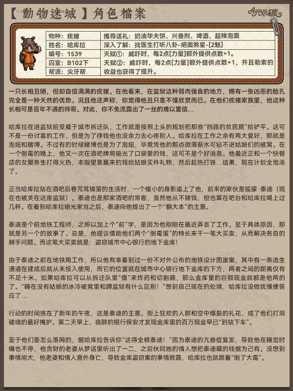 动物迷城尖牙帮角色档案分享 动物迷城尖牙帮人物档案大全