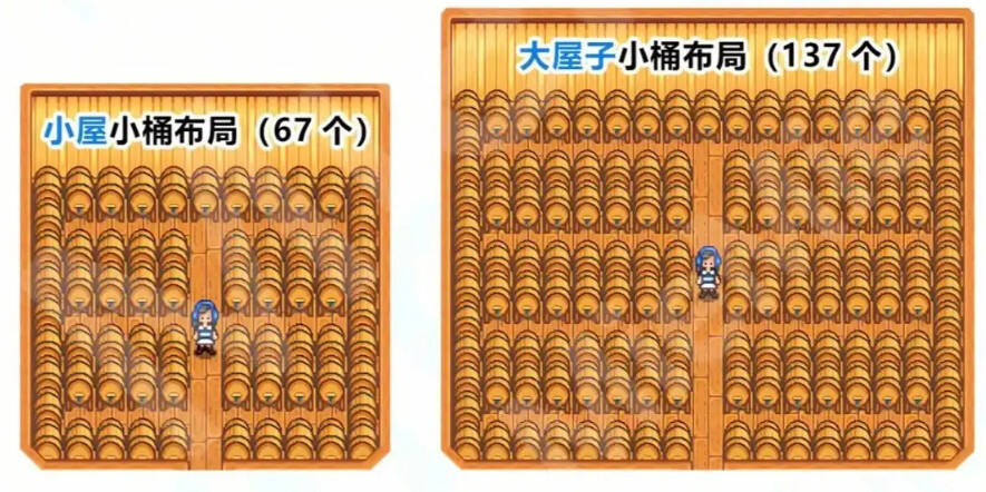 在《星露谷物语》中,酿酒是一个非常有挑战性和回报的策略。为了酿酒,玩家需要准备一些基础资源,如葡萄、工具和设备。这些准备不仅影响着酿酒的成功率,还可能对玩家的经济状况和社区影响力产生影响。 首先,葡萄是酿酒的主要原料,其获取方式取决于玩家是否选择了冬季或夏季的酿酒任务。如果选择了冬季任务,玩家可以通过挖掘冬日之酒酒窖获得葡萄,但需要额外的时间和精力去种植和收获葡萄。如果选择了夏季任务,玩家可以在自家农场种植葡萄,但葡萄成熟的时间可能会影响酿酒的进度。 其次,酿酒需要使用各种工具和设备,如榨汁机、发酵桶和储酒桶等。这些工具和设备的获取方式也各不相同,有的需要玩家完成某些任务或购买,有的可能需要玩家自己制作。这些工具和设备的质量直接影响着酿酒的品质和效率。 在《星露谷物语》中,酿酒是一项非常有挑战性的任务,需要玩家投入大量的时间和精力。一旦成功酿出美酒,玩家不仅可以获得丰厚的回报,还可以在社区中获得更高的声望。此外,酿酒的成功也会增加玩家的经济收入,为玩家提供更多的资源去探索和发展其他游戏内容。 总的来说,《星露谷物语》中的酿酒攻略分享为玩家提供了丰富的资源和策略,帮助他们在游戏中取得成功。同时,酿酒的成功也会对玩家的经济状况和社区影响力产生积极的影响。 星露谷物语中酿酒流是一种十分赚钱的流派,酿酒流需要玩家通过各种作物进行酿酒后再将酒卖出以获取高额的利润,很多玩家不知道酿酒流应该做哪些准备,下面就为大家分享星露谷物语中酿酒的方法。 以下内容由小黑盒用户牛仔哥斯拉分享。 这次为大家介绍星露谷中最赚钱的流派——酿酒流 一、先了解酿酒流 顾名思义,酿酒流就是用作物酿酒,再将酒出售,从而获得高额金钱。 酿酒流最重要的技能就是耕种十级的工匠技能,可以提升我们酒和其它加工品的价值 首先,水果,蔬菜,以及一些特殊作物都是可以放进小桶进行酿造,不过根据收益和复杂度来说,酿酒流一般都是前期啤酒花酿酒,然后过度到收益最高的杨桃酒,或者上古酒。 又或者蜂蜜酒可以省去原料生产这一步,一天收获两次,收益也是比较可观的。 二、前期准备 小桶配方需要耕种等级达到八级解锁 第一年春季多种防风草和土豆,或者存够钱买草莓。夏季种啤酒花,这样即可以快速提升耕种等级,又积攒了原材料 制造小桶需要大量木材,铜锭,铁锭和橡树树脂,所以前期优先升级斧头和稿子。 铜锭铁锭只要有时间多下矿刷一刷就行,但木材很容易不够,所以要把砍树掉的种子种下,如果钱够的话,第一年也可以在罗宾商店多屯一点,不然后面就涨价了。 橡树树脂需要的树液采集器在采集四级解锁,可以专门种一片橡树林来收集树脂。 总之就是要尽快升耕种等级并尽量多地制作小桶 三、原料获取 杨桃酒 杨桃种子在沙漠绿洲中购买,只能在夏季或者温室种植 上古酒 上古种子无法直接购买,我们要先获得古代种子,然后捐赠给博物馆,获得一个上古种子和它的配方。因为古代种子不好获得,所以我们一般不用配方制作,而是先种出上古水果,再通过种子制造机慢慢囤积上古种子。 蜂蜜酒 周五在沙漠绿洲中购买,不用在蜂房采,省去生产步骤,一天收获两次,收益可观。 四、小桶布局 除了野外我们可以建造房子来存放小桶,这样既美观,又节省空间,下面是房子中的小桶布局 五、陈酿 房子升级第三次后会解锁地下室和木桶,放入酒或者奶酪会升星,不过周期太慢,价格提升不算太大,所以不是酿酒流的必要流程,可以选择不做。 --------------- 以上就是酿酒流的全部内容啦 |