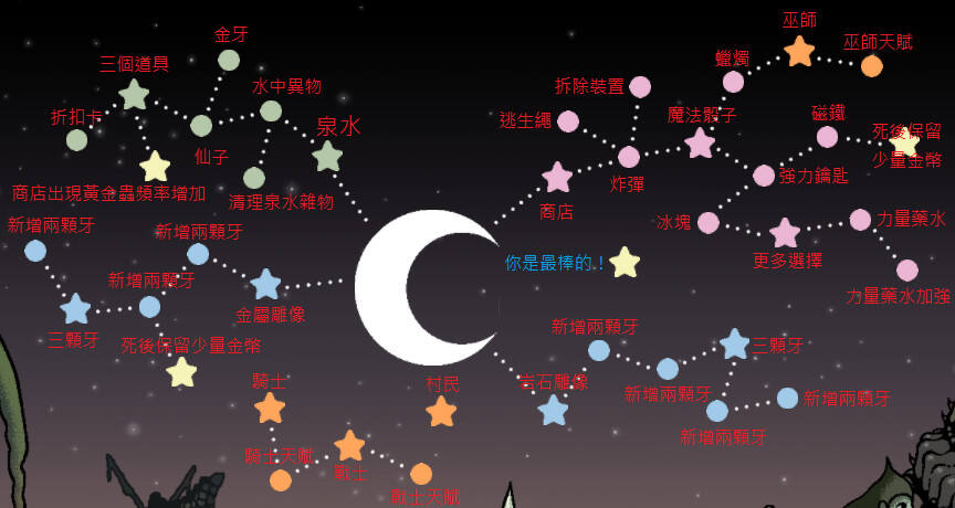 盐面团天赋树解锁一览及其对玩家的影响可以从以下几个方面来分析: 1. **游戏体验**:天赋树的解锁为玩家提供了更多的游戏方式和策略。盐面团这种食物制作游戏中的天赋树,可能会增加一些与食物品质、烹饪速度等相关的技能,从而丰富了玩家制作盐面团的体验。 2. **挑战性**:天赋树的解锁也增加了游戏的挑战性。玩家需要根据自己的喜好和游戏进度,选择适合自己的技能来解锁和提升,从而更好地应对各种游戏情境。 3. **平衡性**:在解锁天赋树的过程中,开发者需要考虑到各种技能之间的平衡性,以避免某些技能过度影响游戏的胜负。如果某些技能过于强大,可能会使游戏变得缺乏挑战性。 4. **玩家个性化**:通过解锁不同的天赋树,玩家可以塑造出不同的角色,这有助于增加游戏的个性化。每个玩家都可以根据自己的喜好和游戏风格来选择不同的天赋树,从而创造出独特的角色。 5. **社区互动**:如果玩家社区对天赋树的解锁有不同的看法,可能会引发一些讨论和争议。这有助于促进社区的互动和交流。 6. **新手引导**:对于新手玩家来说,一个清晰的解锁路径可以帮助他们更好地理解和适应游戏。这样可以降低他们摸索和犯错的几率,从而让他们更快地享受游戏。 总的来说,盐面团天赋树的解锁为玩家提供了更多的游戏方式和个性化体验,同时也增加了游戏的挑战性和社区互动。开发者需要注意平衡各种因素,以确保游戏体验的顺畅和公平。 盐面团中天赋树的解锁可以解锁更多的道具、事件以及更多的可玩角色,下面就为大家分享盐面团中天赋树的解锁路线一览,各位玩家可以通过各自的喜好来决定解锁的路线。 图片由steam用户浴火鳳凰分享。 游戏目前处于EA阶段,当前的游戏版本中天赋树大致可以分为左上、左中、左下、右上、右下这五个区域 左上主要与圣泉的解锁挂钩,大部分天赋效果都跟圣泉相关,可以加强圣泉事件的效果,左上解锁到后面还可以解锁折扣卡、以及提高商店黄金虫的刷新率。 左中是与金属恶魔雕像有关,解锁的越多,金属恶魔雕像的牙齿种类就越丰富,同时这边还可以解锁“死后保留少量金币”可以提高游戏中金币的利用率。 左下则是与职业相关,可以解锁战士职业与天赋 右上更多是与商店的强化效果,可以解锁更多的道具,丰富道具种类、也可以解锁巫师职业与天赋 右下则是跟石像恶魔雕像有关,解锁的越多石像恶魔雕像的牙齿种类就越丰富。 |