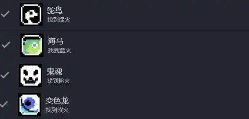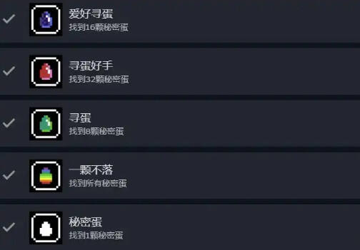 动物井Animal Well中一共有20个成就,要想达成全成就不是一件容易的事,不少玩家对游戏中成就的解锁方法感到疑惑,下面为大家分享动物井Animal Well中20个成就的解锁方法。 以下内容由小黑盒用户祝尼魔大王分享。 全成就指南 1、探索 没什么好说的,正常推图都能找到。 2、来来回回来来回回来来回回 第一次坐在【飞盘】上移动解锁 3、遛狗 站在龙猫的头上,可以用溜溜球指引它向前或向后 4、快速移动笛子 使用笛子传送,按指定节奏吹笛子可以快速传送到某些特定地点。(道具解锁那有常用曲谱) 5-8、鸵鸟、海马、鬼魂、变色龙 找到绿蓝粉紫四种火,地图上都是有显示的 9-13、寻蛋 找到1/8/16/32/64颗秘密蛋,最麻烦的成就 ![]()