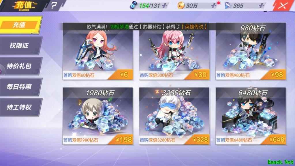 充值 封印战记中获取钻石最快的方法莫过于氪金。游戏里有6元、30元、98元等不同层次的金额给玩家充值。不过小编并不推荐直接花钱获得,所以放在最后在说充值。