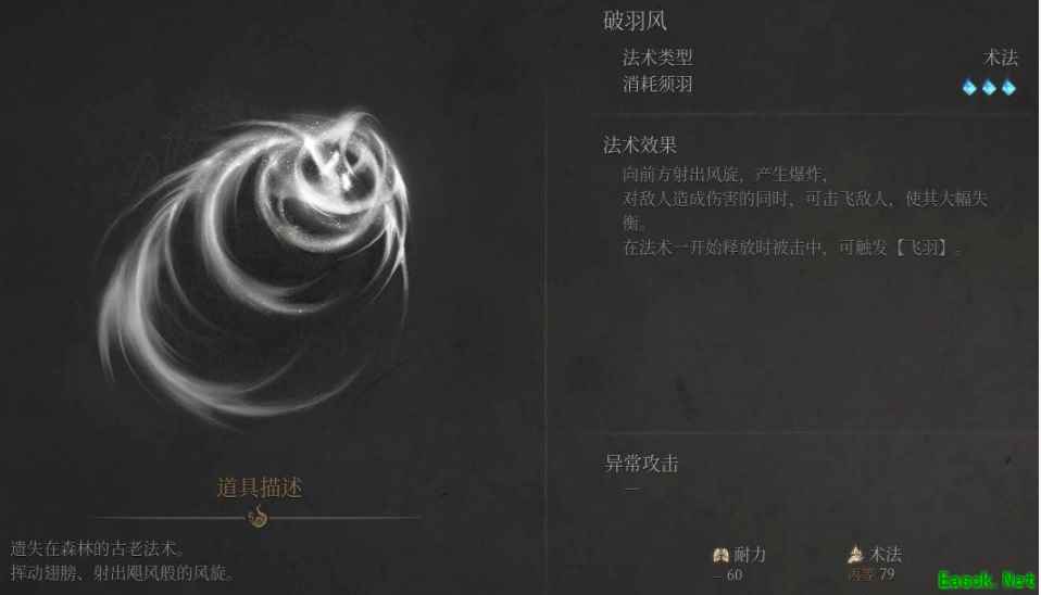 明末渊虚之羽中法术是战斗中必不可少的一部分,即使是热爱纯粹战斗的玩家也会使用法术,毕竟法术在战斗中往往能起到关键作用,尤其对于主玩单手剑加法术的玩家来说,法术在战斗中的占比是巨大的。今天小编为大家介绍破羽风的位置。 破羽风不是击败BOSS的法术,在位置上有些偏,导致很多玩家容易错过这个强力的法术。 找寻流程一览 需要玩家从真武山的鸟人居所神龛出发,走神龛背后的近路。 直接前往BOSS僰人古巫所在区域。 走到路的底部,沿着右侧上坡。 走到顶,在左侧鸟窝里的尸体上,就可以拾取此法术。
