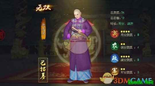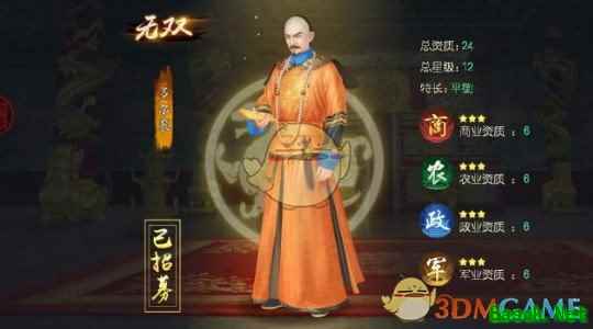 叫我万岁爷大臣培养哪个好大臣升级会按照特长比例加同比例的属性,这也是我认为这个游戏主要的玩点, 科举:君主级别每升一阶就会触发一次科举,这东西前期做任务好升级,但后期就有点漫长了,所以前期在科举里面怎么选择大臣就很关键啦。 同一批科举出来的大臣都是统一品质的(名牌的颜色:蓝色(优秀)紫色(卓越)橙色(无双))。 每个大臣也都会对自己有一段介绍,通过这些介绍就可以大致分析出他们的特长了。同品质的总资质点数是一样的,所以大家完全不用担心在三个里面选了差的问题,只要选择自己目前需要的就好。