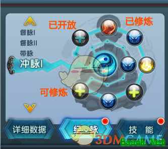 修炼经脉 修炼经脉是侠客获得战斗力提升的重要途径之一。进入侠客经脉栏,可以查看侠客当前的经脉修炼情况。绿色的加号表示当前可以修炼,蓝色的加号表示已开启经脉点,还缺少部分材料。