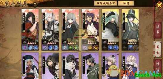鸨羽芭蕉萌夏,周酒井一刀斋,奶妈七太夫 没有sr也可以先用r的,r的樒和唐狮子应该不难抽到,有的话可以代替一刀斋 强势输出阵容推荐