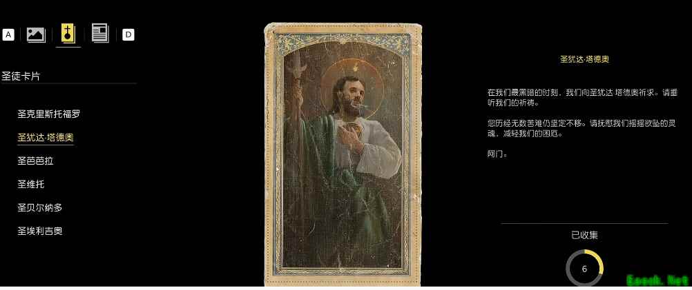 直接进入即可看到神龛。 上前按E键互动,祈祷结束后即可获得圣犹达塔德奥。 收集物品介绍 神秘狐狸 地图上不会主动显示,需通过探索或任务触发。 收集后会在地图上标记,部分可通过商店购买(如第三章扣押场)。 三曲腿图章 用于兑换货币,部分挂在墙上(如第三章后门)。 收集后可解锁相关成就。 |