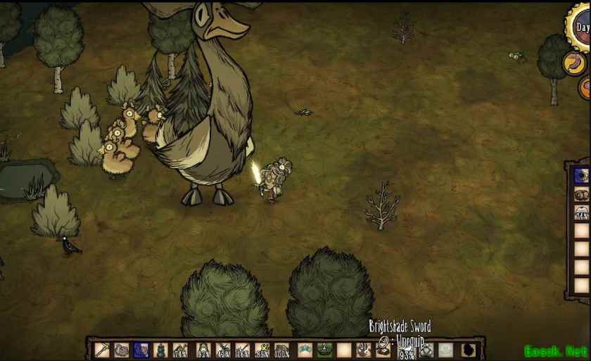 在饥荒中,每个季节都会出现相应的BOSS,通常玩家们出生在秋天,在玩家们拥有挑战BOSS的实力时,游戏时间一般在春天,所以春季BOSS将会是玩家们第一个挑战的BOSS,接下来小编就为大家带来春季BOSS麋鹿鹅的打法教学。 装备推荐 2把武器(如长矛、火腿棒等) 防具:木甲或是猪皮甲。 环境选择 选择巢穴附近或基地围墙边作战,避免脱离仇恨范围。 小兵战斗策略 麋鹿鹅幼崽可以先处理,要点如下。 幼崽夜间休眠,可安全击杀。??幼崽攻击可能引发闪电,穿戴绝缘装备(雨帽、眼球伞)或建造避雷针防范。
