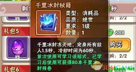 《暴走大侠》千里冰封有必要升满吗首先来说一下,【千里冰封】有一本一级就够用了,没有必要升到最高级! 因为这个升级效果并不明显,升级只能减少CD,也不能提高冰冻时间,固定就是1.5秒。 当然了,如果是升满,效果还是有点的,满级减CD效果也好点,但是代价太大,性价比不高,推荐大家用来升【吐故纳新】,这个才是真香!