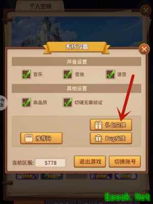 3、接着在系统设置界面我们点击礼包兑换选项,如下图所示;