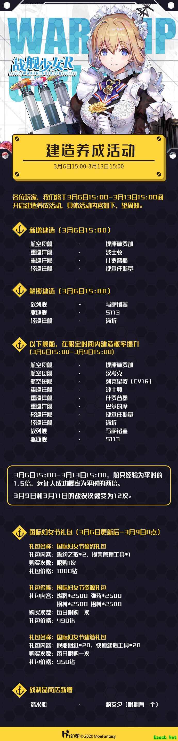 《战舰少女R》2020年3.6圣建养成活动公告