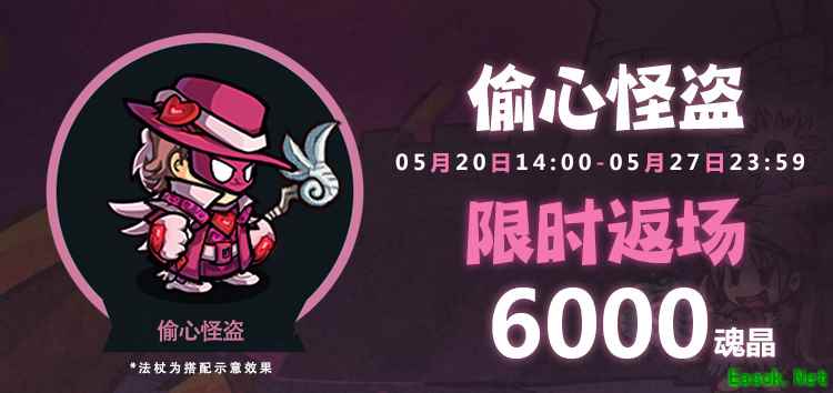 被粉师傅冠以“粉色版游乐瓦子”的大名,偷心怪盗回归! 【上架时间】 5月20日14:00-5月27日23:59(正式服与精英服同时上架) 售卖价格:6000魂晶 以上就是小编本篇《失落城堡》520偷心怪盗限时返场的全部内容,更多游戏相关攻略,请关注手游专区。 |