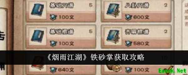 烟雨江湖铁砂掌怎么获得?这个招式的战斗力还是很强悍的,那么它的获取方式是什么呢?还没学会的小伙伴可以来看看下面的烟雨江湖铁砂掌获取攻略,希望对大家会有帮助。
