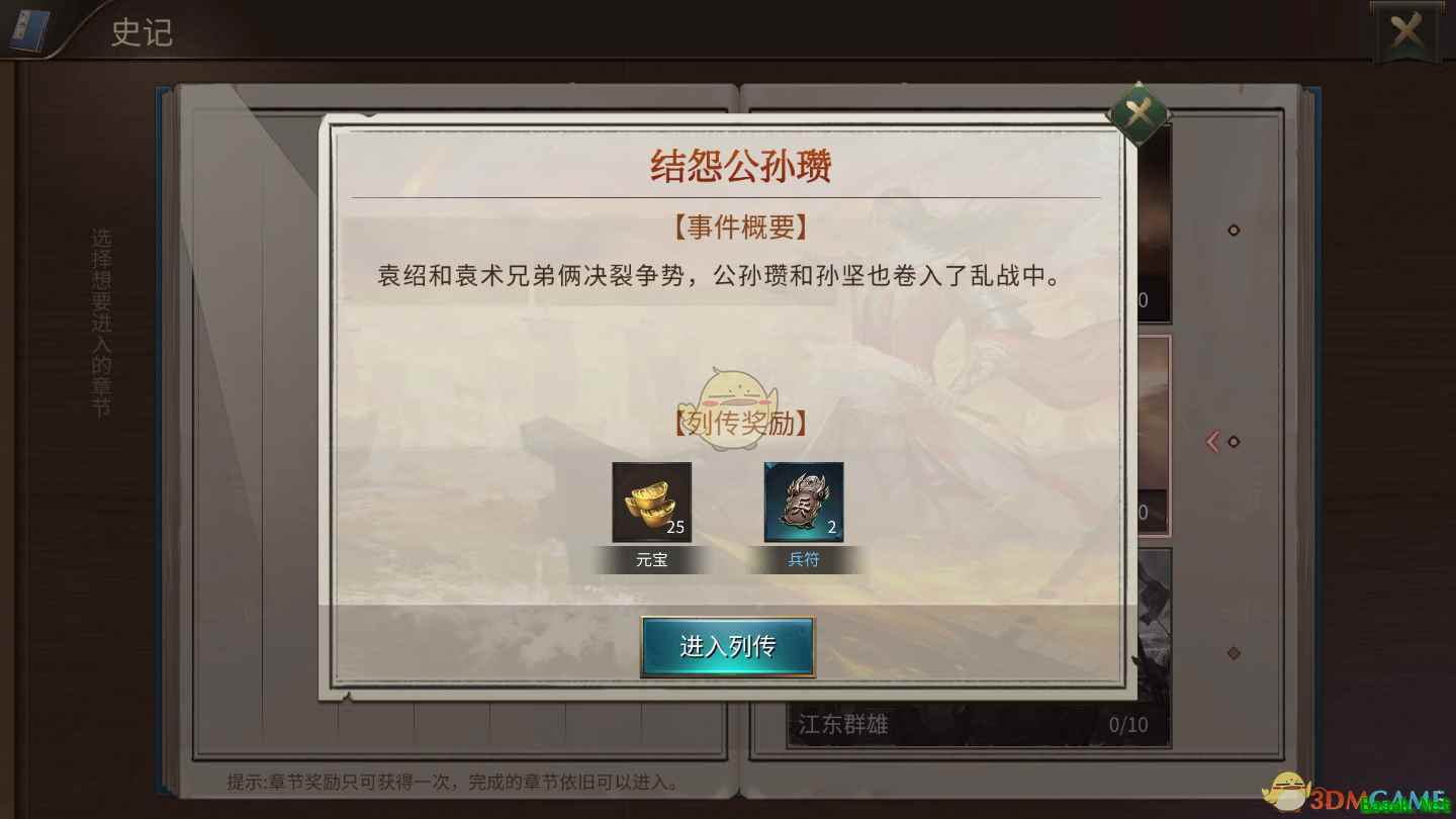 史记副本是对真实历史事件的回顾,有的可能是一段剧情欣赏,有些需要进行一场战斗,剧情结束狗后或有元宝、武将、军令、政令、觉醒石、兵符等奖励。各位主公不要错过哦!