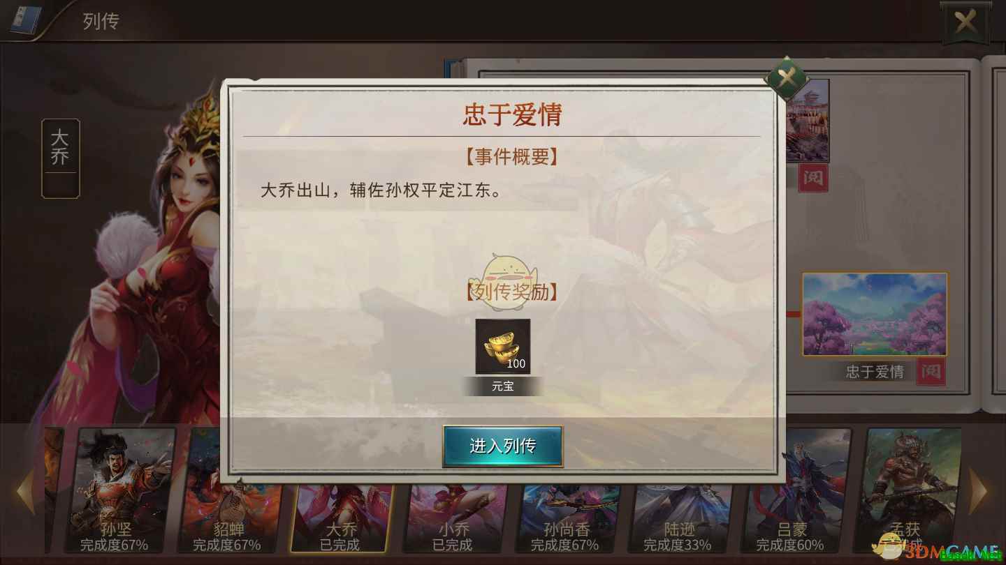 解锁武将列传可以获得大量奖励,并且还可以看到武将的生平事件,可以说还是蛮吸引人的。 |