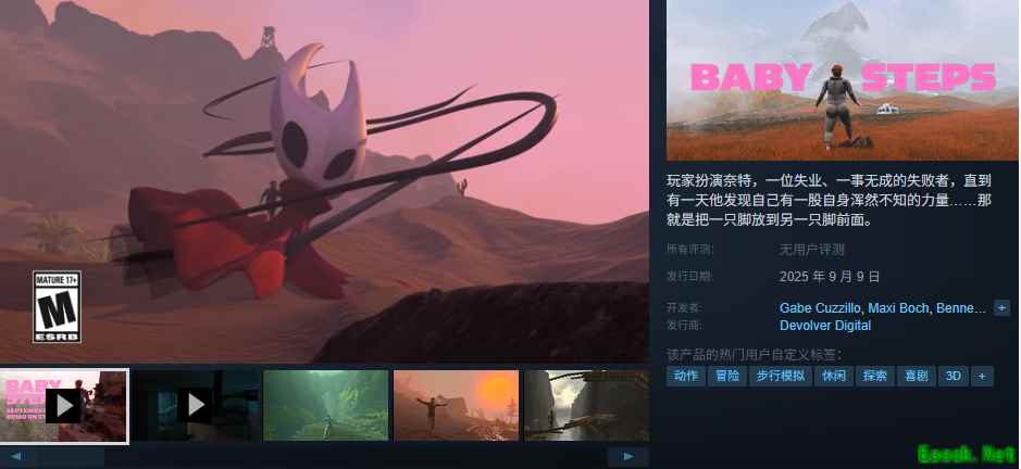 游戏类型为模拟冒险游戏,英文全称又叫做Baby Steps。 游戏核心玩法基于真实物理模拟,玩家需精准控制左右腿交替迈步,穿越泥沼、雪原等复杂地形,1°的步态偏差即可能导致角色跌倒,挑战性极高。 |