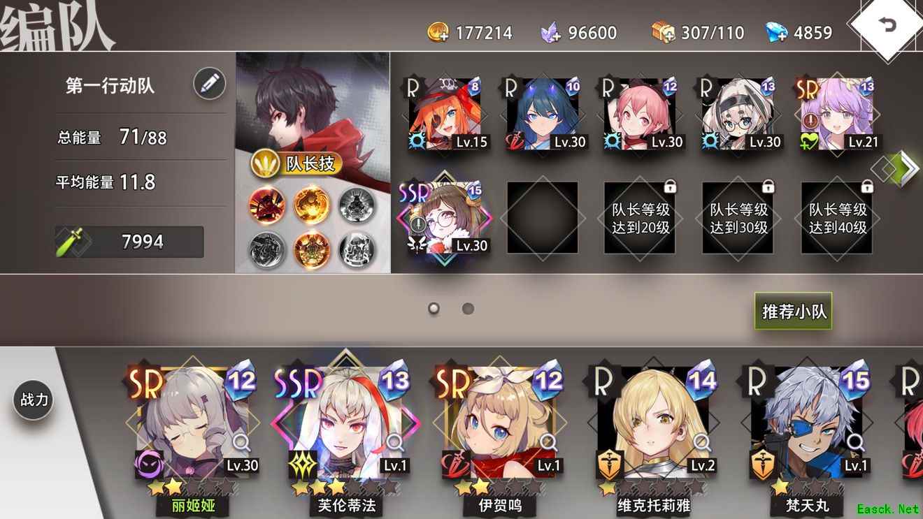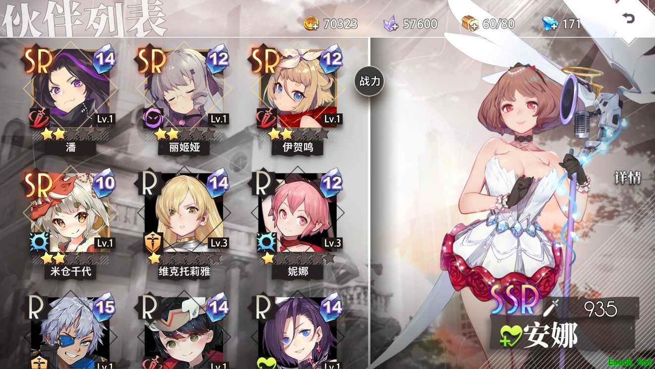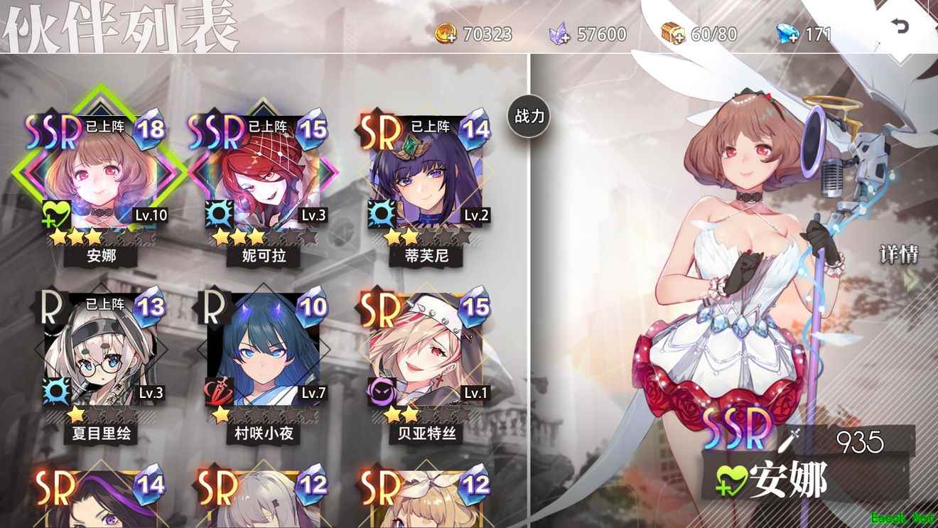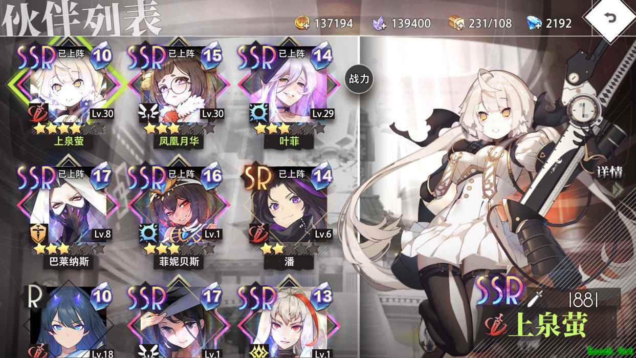 如果抽到潘了,你可以选择碎片升星,也可以选择去随机一个SSR看手气。 实际上这队伍过5-10也是可以三星的,有个小技巧,第二个上妮娜,晚一点点上,让队长挨对面队长揍一下,这样妮娜可以多打一轮伤害。 阵容1: 潘,夏目,小夜,妮娜,是主力,前排爱丽丝,配个凤凰或者送的姬,10图之前没问题了。